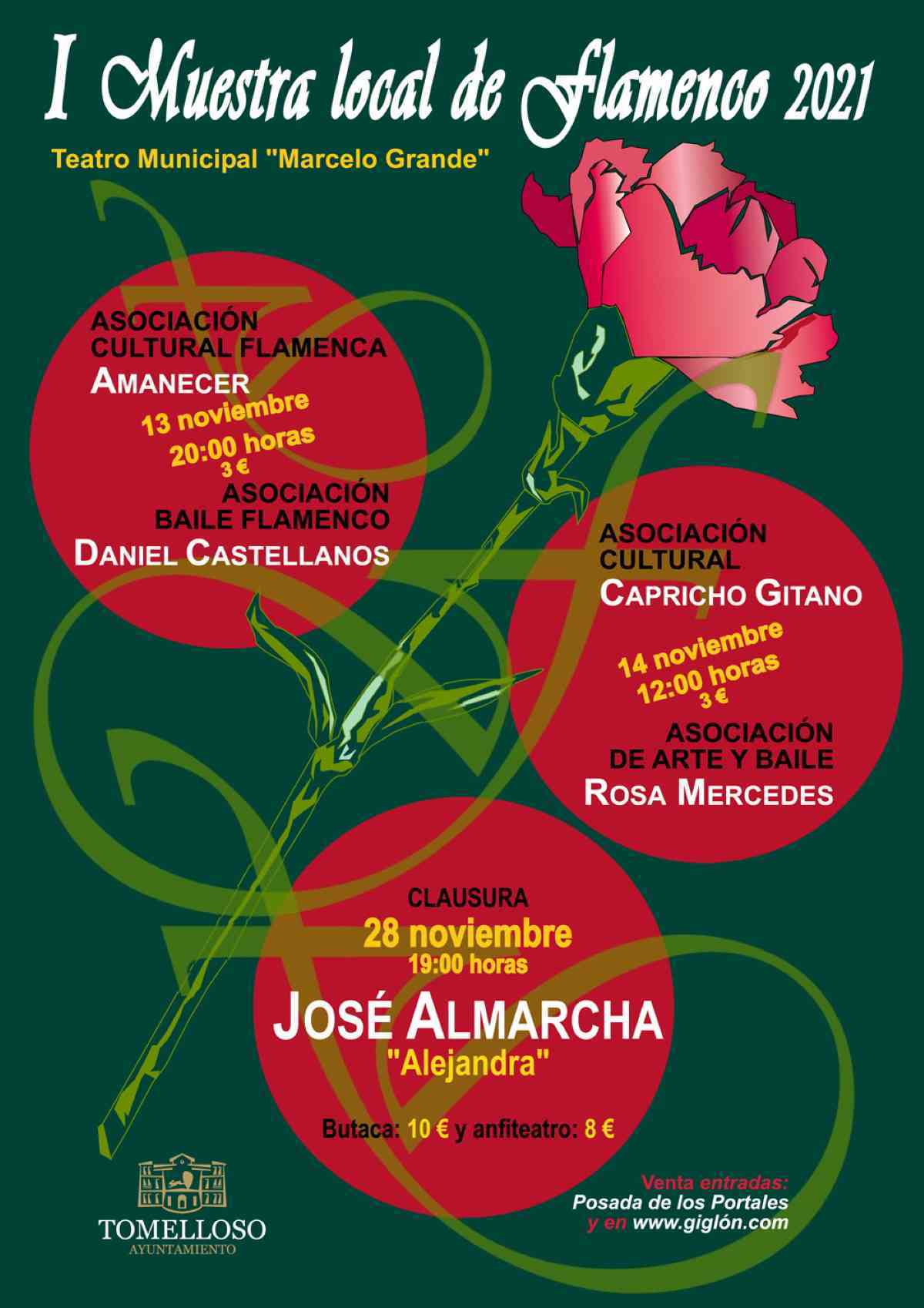 Las actuaciones tendrán lugar en el Teatro Municipal “Marcelo Grande” a las 20:00 h. en sábado y a las 12:00 h. el domingo a un precio de 3 euros cada jornada. Para la clausura, el domingo 28 de noviembre a las 19:00 h. también en el Teatro Municipal, se contará con la actuación del guitarrista José Almarcha que presentará su último disco “Alejandra”, un espectáculo que tiene un precio de 10 euros en butaca y 8 en el anfiteatro.