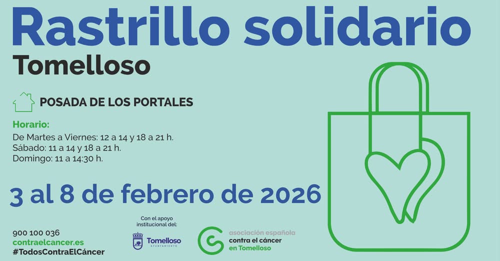 La lucha contra el cáncer no se puede ganar solo. Requiere el esfuerzo colectivo de toda la sociedad. Al asistir al Rastillo Solidario, no solo estarás contribuyendo a esta causa vital, sino que también estarás demostrando tu apoyo a todos aquellos afectados por esta enfermedad. Los esperamos en la Posada de los Portales de Tomelloso, del 3 al 8 de febrero.