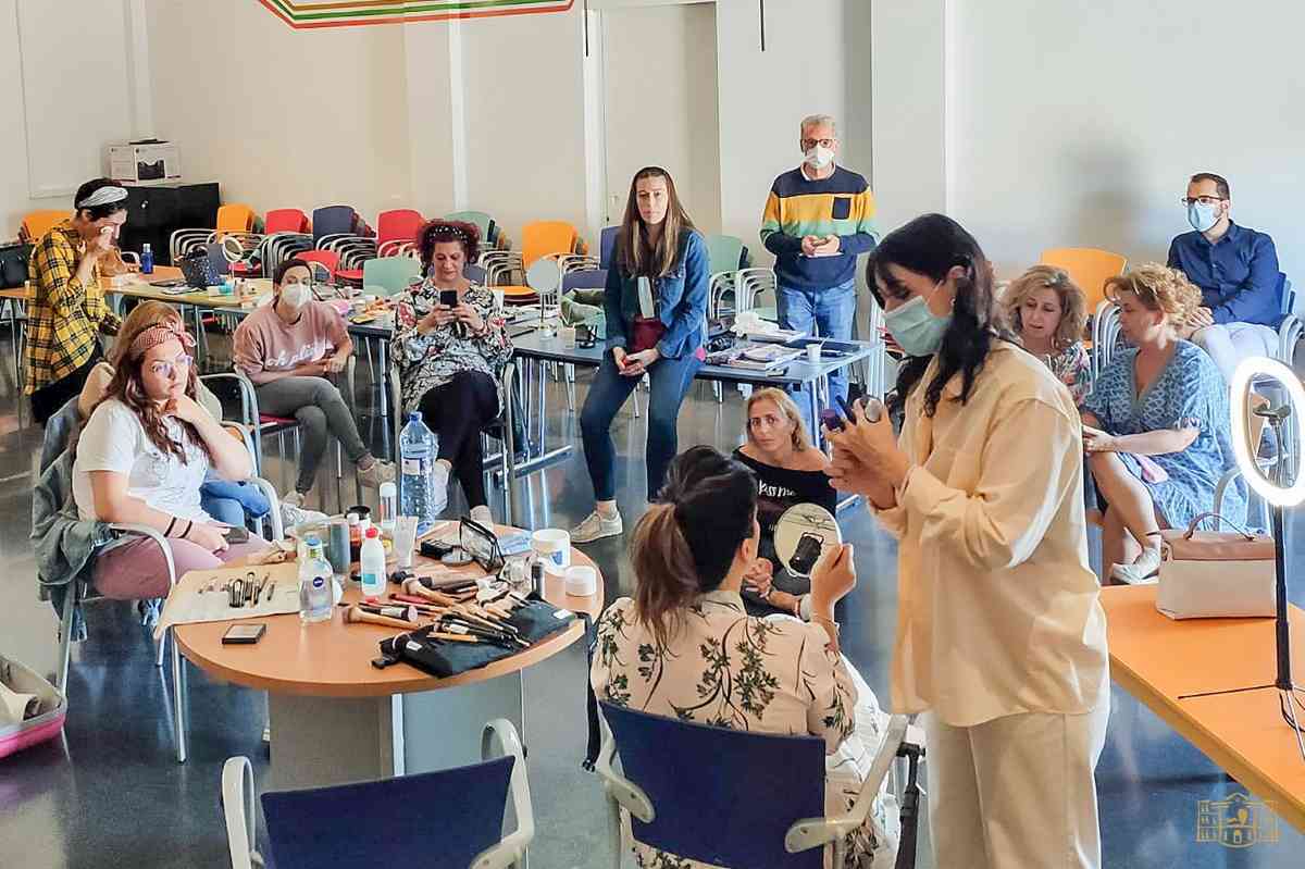 El taller, dirigido por la artista local María Lara, incluyó la realización de un facechart (dibujo sobre papel del maquillaje antes de hacer el maquillaje), diversas técnicas de envejecimiento, maquillaje de época, desde victoriano a años 20 y la realización de un animal para aprender a hacer pelos, plumas…