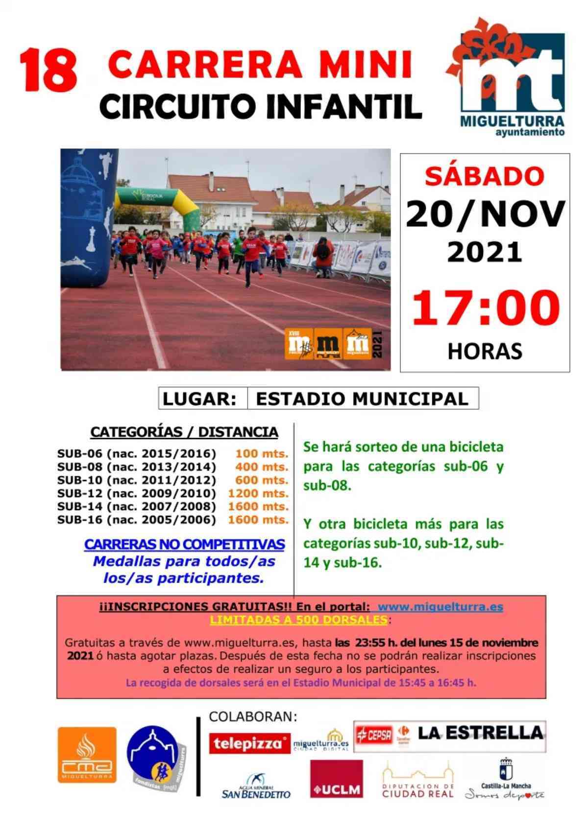 Como ya es tradición a la par de la Media Maratón Rural se celebra la “Carrera Mini” en un circuito infantil para los niños y niñas que hayan nacido entre los años 2005 y 2016 en distintas carreras. Organizada por el Área de Deportes del ayuntamiento de Miguelturra (Ciudad Real) en colaboración con Fondistas Miguelturra.